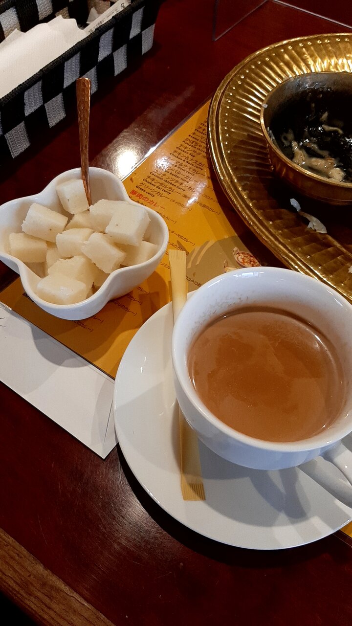 ドリンク飲んで自家製杏仁食べてゆっくりランチ。