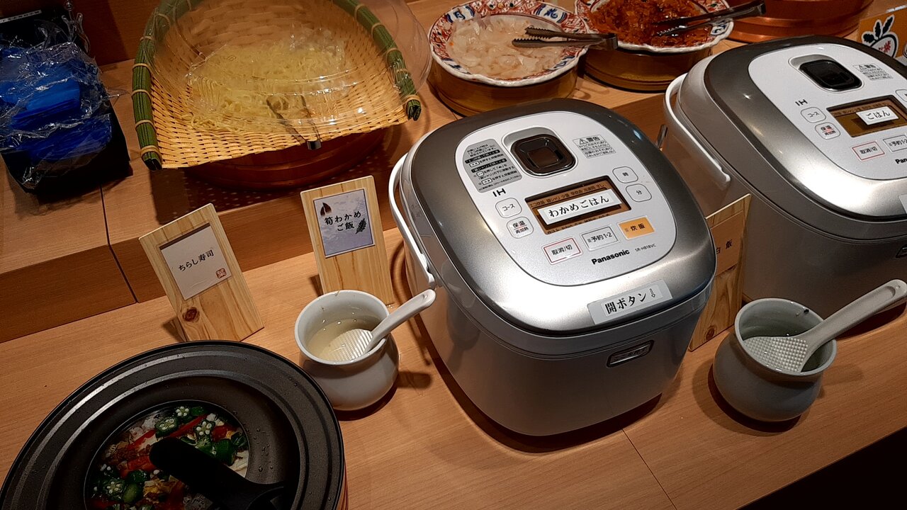 わかめごはん、白飯、中華麺、カレーライス少々と
