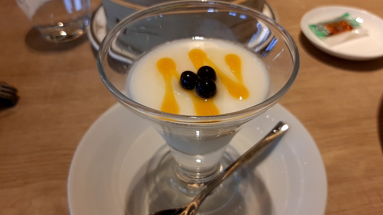 セットの食後の甘味の甘さも、食事を終えるほっとした安堵感を生むのによい味だった。