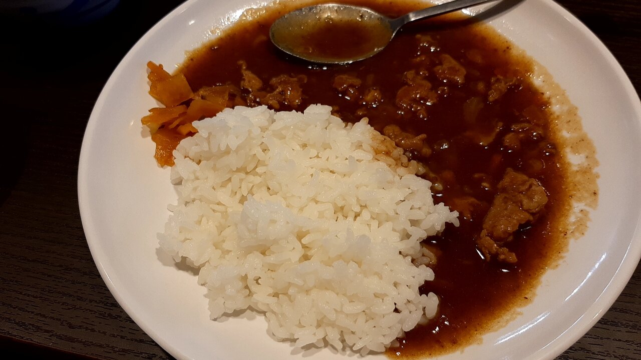 カレーの味と油分とご飯が混ざり合い、鮮やかな味が広がって気持ちいい♪