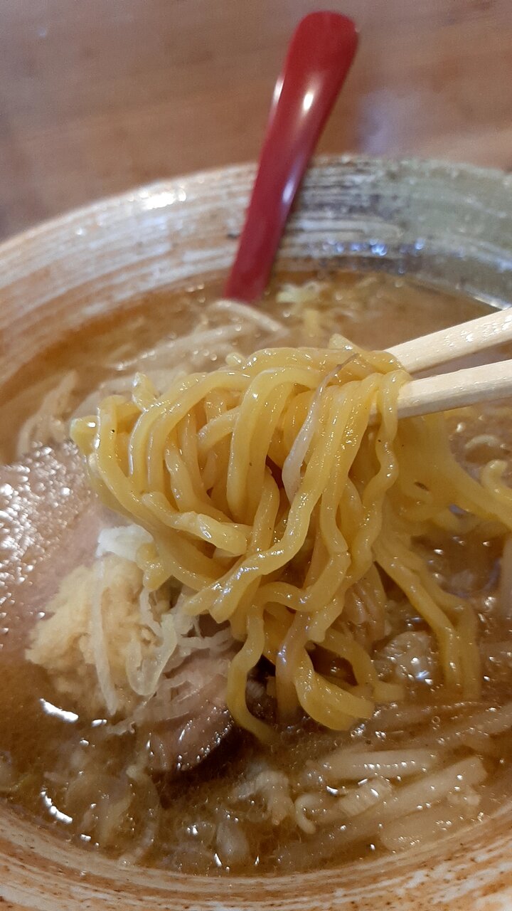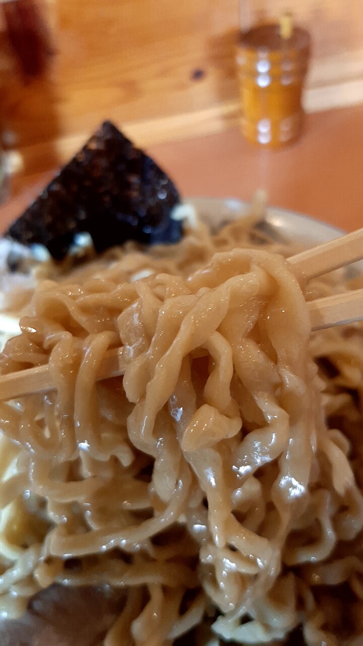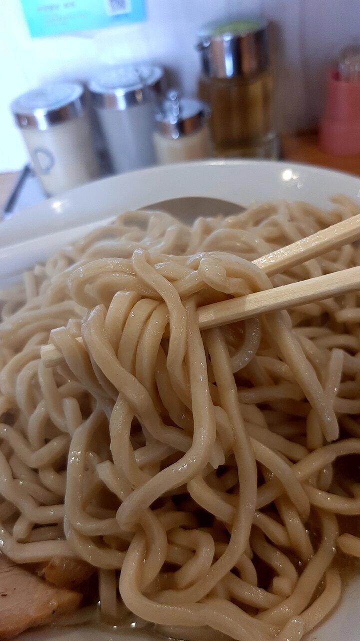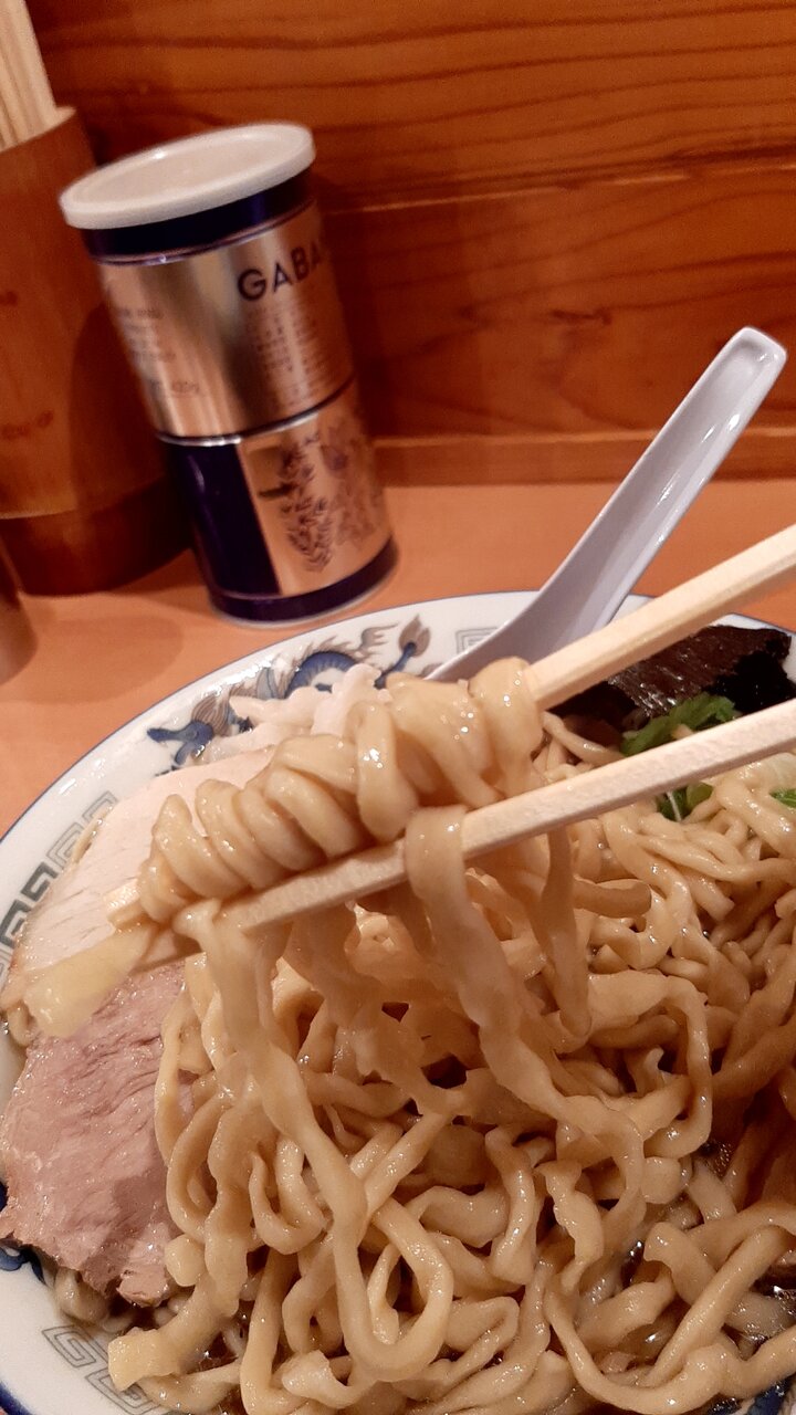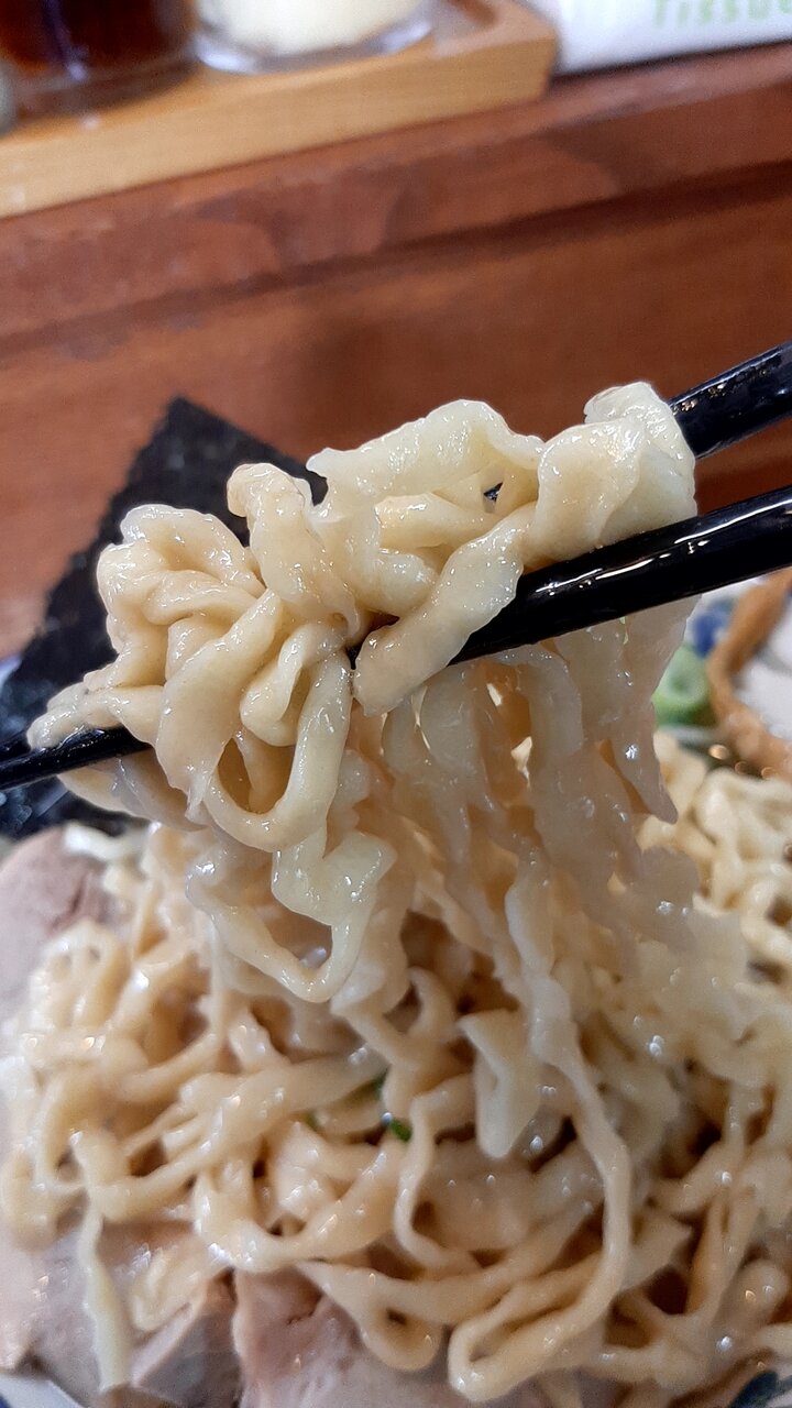 中華そばのゆるいウェーブの太縮れ麺より好み。