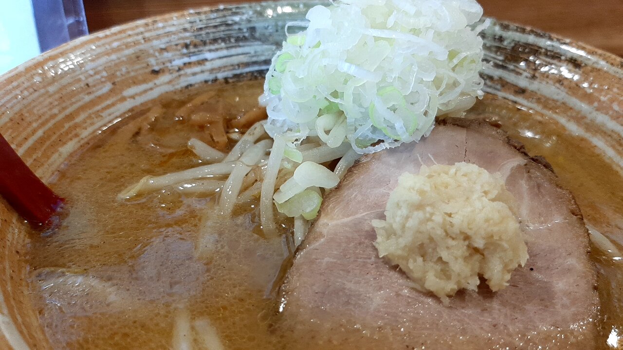 最後はおろしニンニクと刻みタマネギのっけずるり。