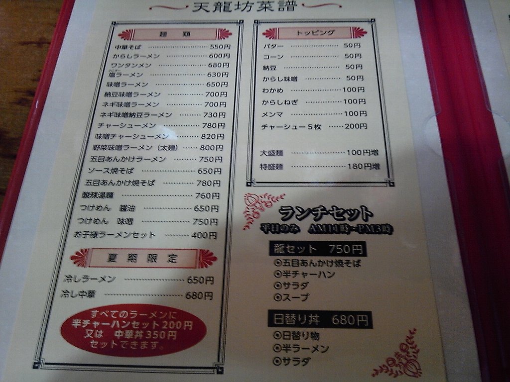 ラーメン屋のメニューのようで