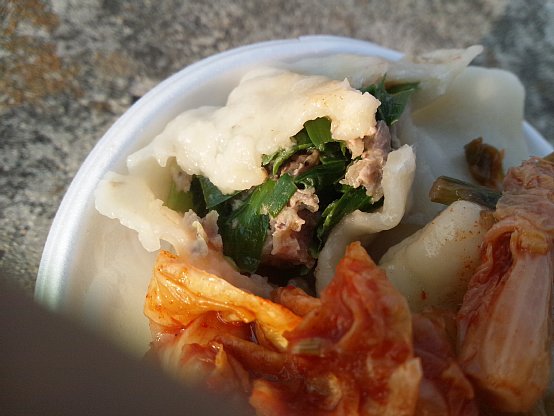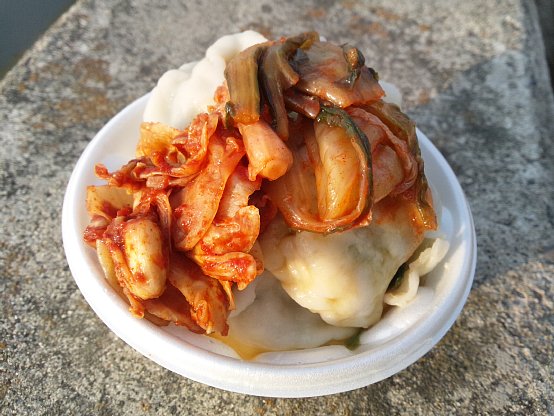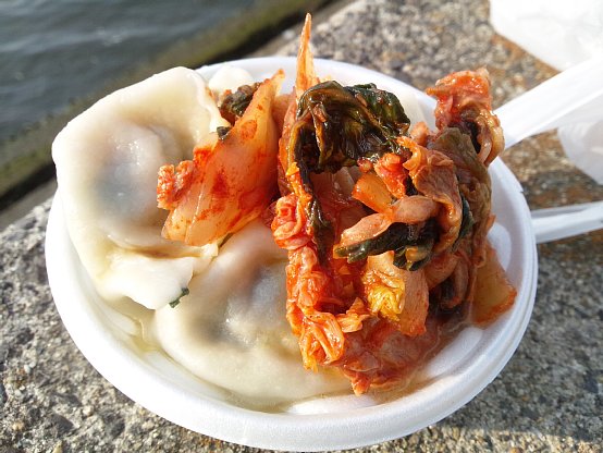 水餃子にキムチですか!!