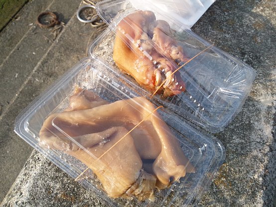 あと豚の耳の醤油煮300円と豚足の醤油煮380円。