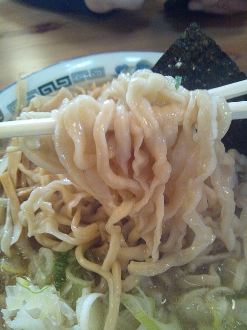 大山店、平打ち薄麺が変わり他グループ店と同等に。茹で上がり早く、麺固で頼むと超好みでしたが残念。岩のりも終了。美味かったんですがね~。